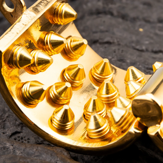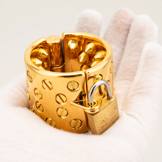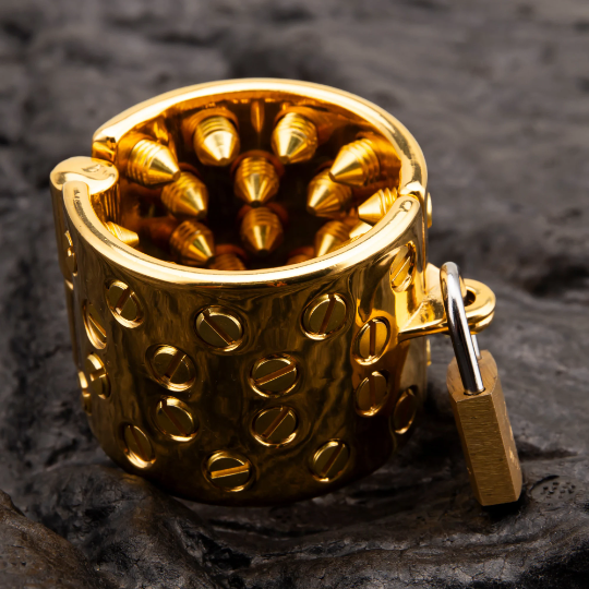 Immerse yourself in the world where sophistication meets exhilaration with our DTY Heavy Duty Gold Kali’s Teeth Ball Stretcher. Whether you’re a seasoned enthusiast or pushing your boundaries, this gold-plated stainless steel accessory promises a journey of pleasure, restraint, and electrifying sensations in the realm of BDSM.