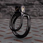 Open Black Lightweight Chastity Cage Training Device with a Curved Ring – a revolutionary training device meticulously crafted from resilient resin material using cutting-edge 3D printing technology. This extraordinary chastity cage not only ensures unparalleled strength and durability but also boasts an exceptionally lightweight design, providing optimal comfort during extended wear.