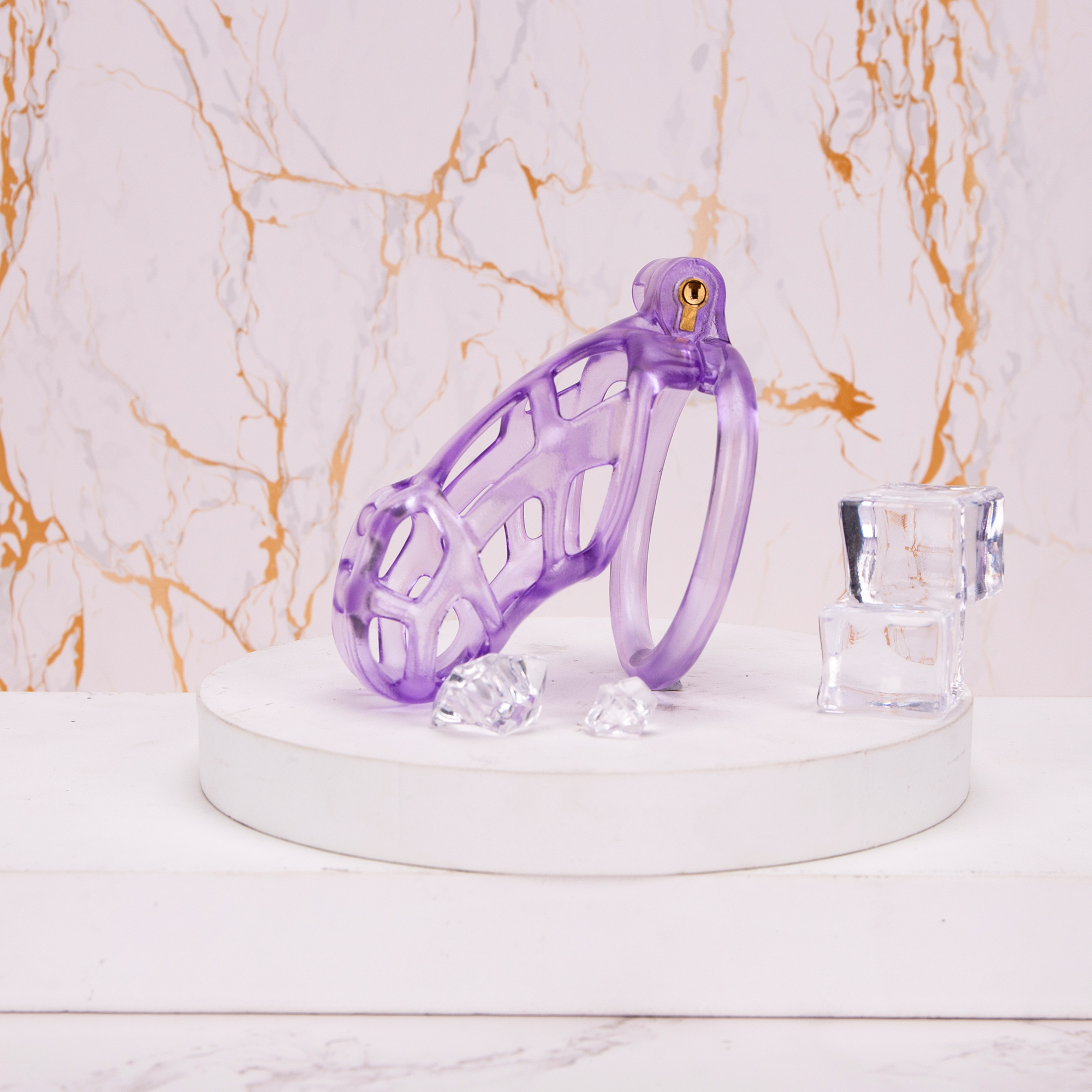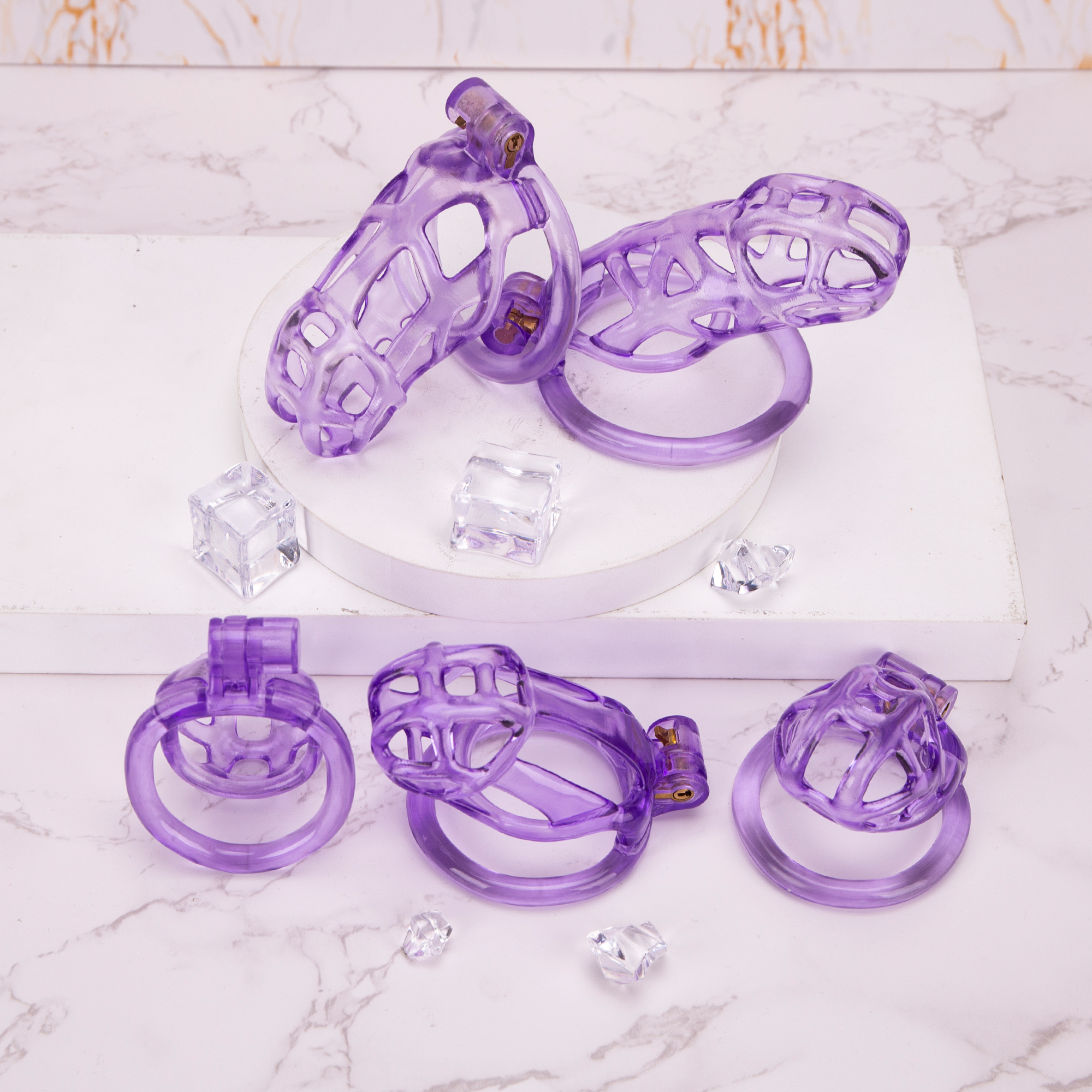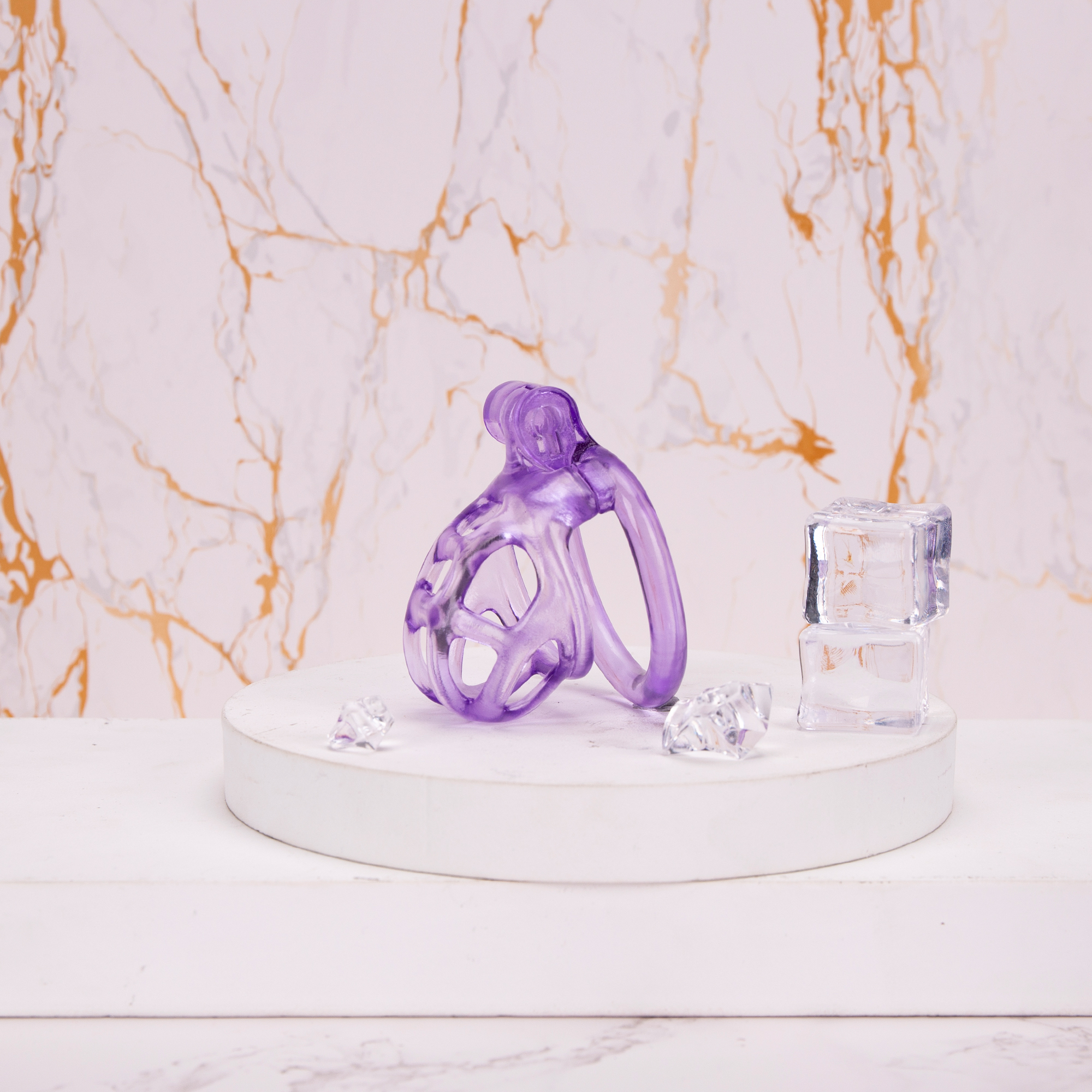 Home 3D Printed Chastity See-Through Ice Purple Mamba Chastity Cage Flat Ring
