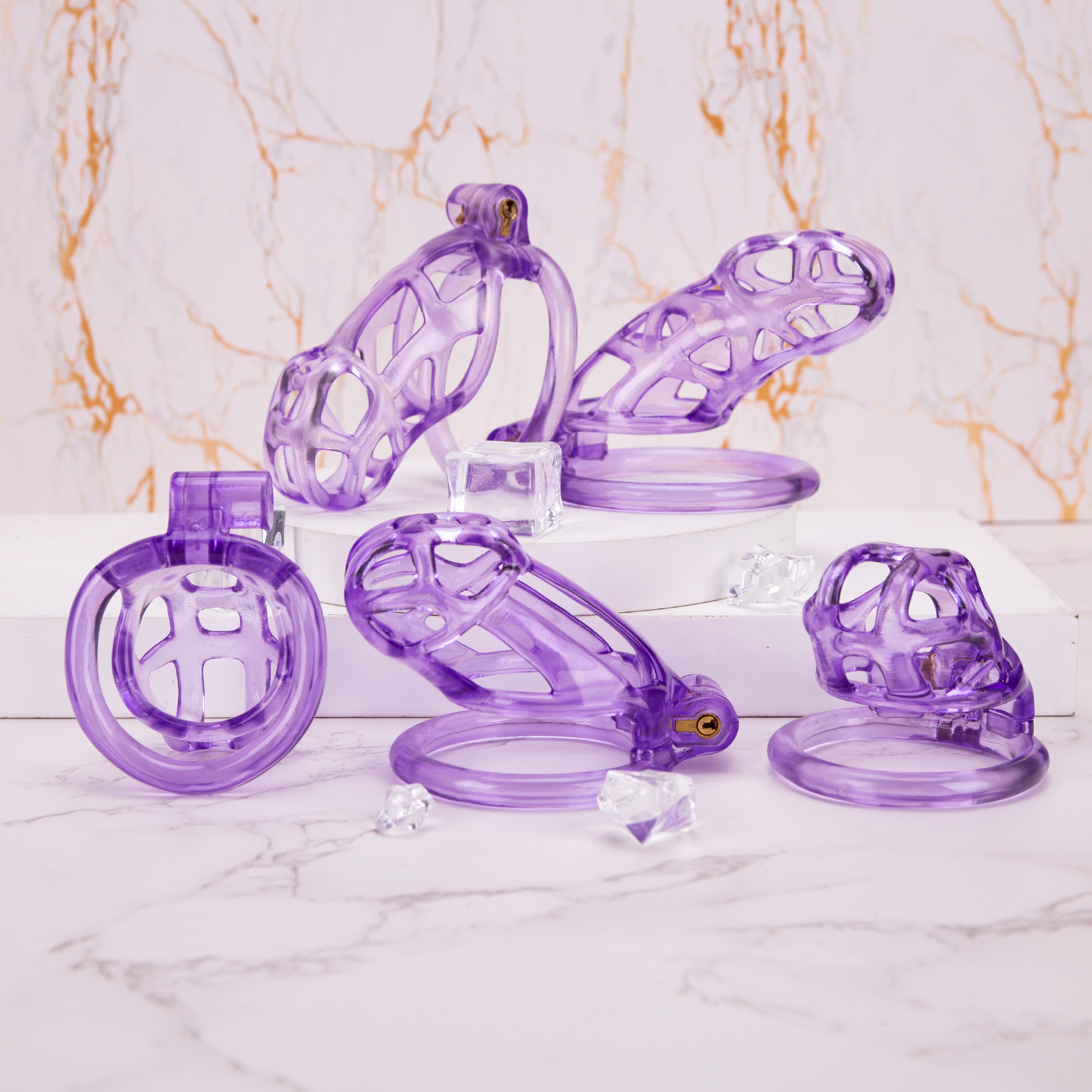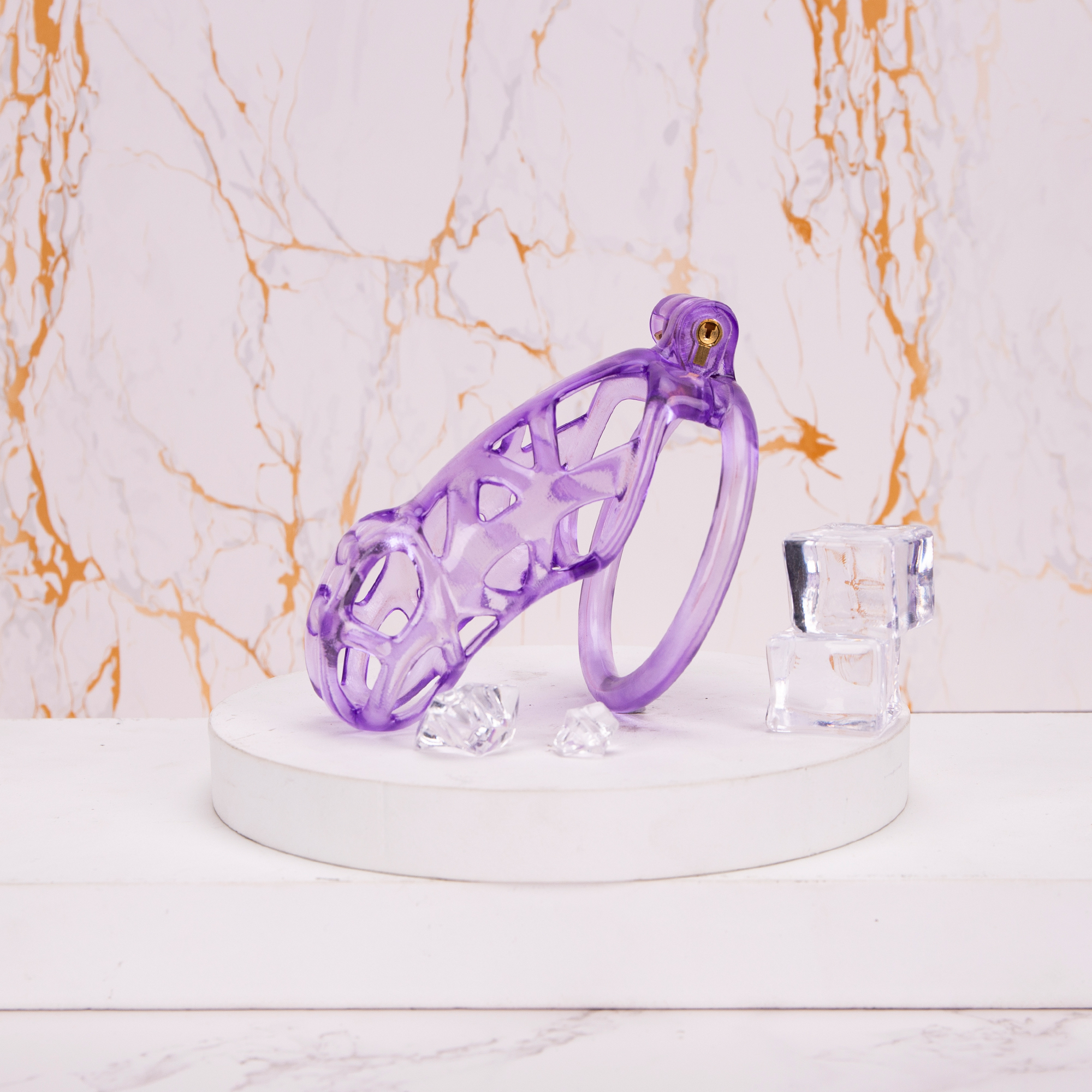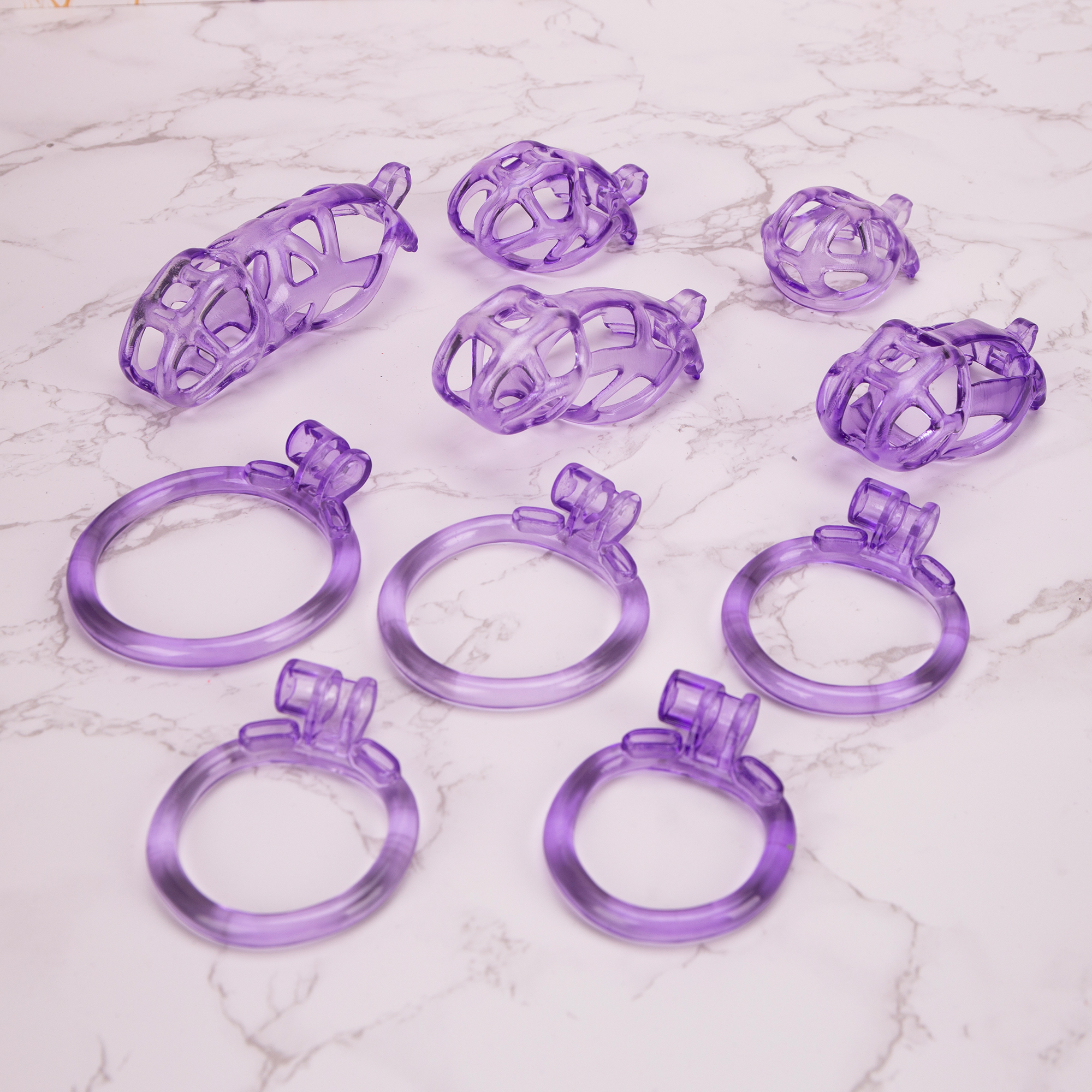 Home 3D Printed Chastity See-Through Ice Purple Mamba Chastity Cage Flat Ring