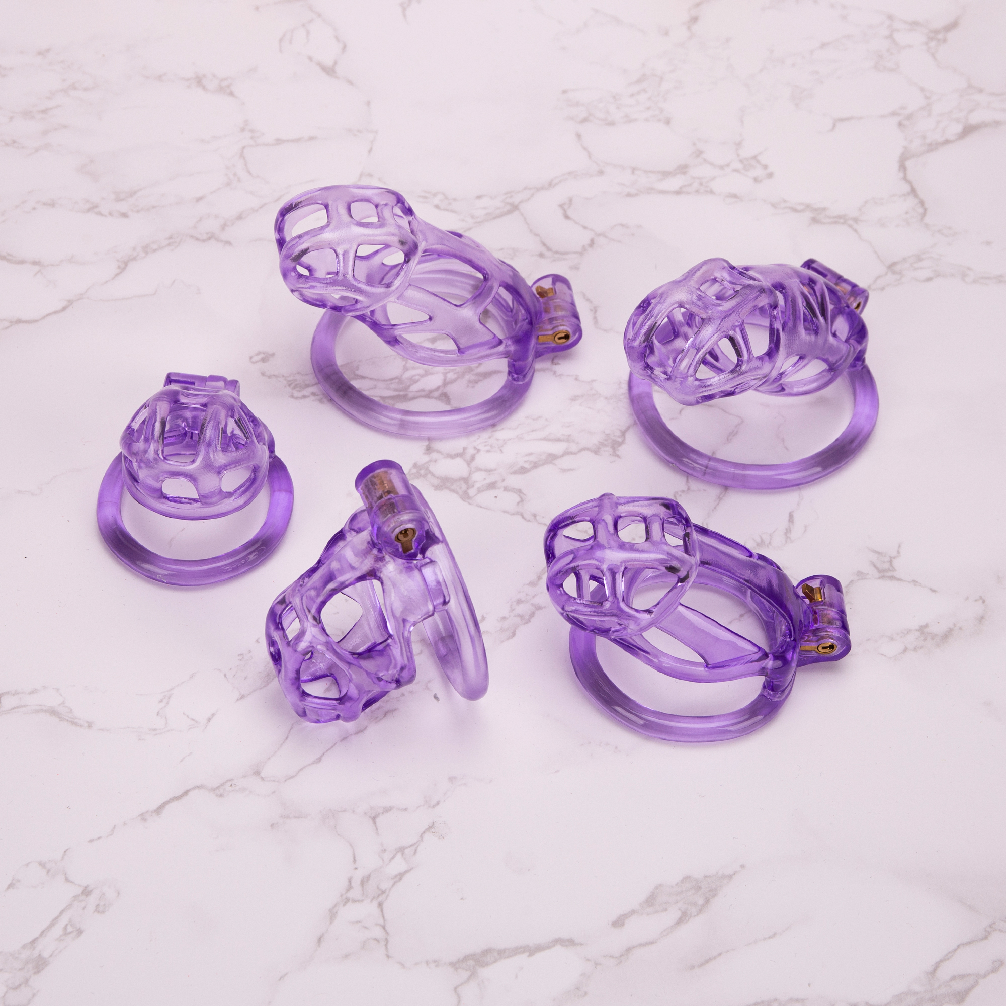The See-Through Ice Purple “Mamba” Chastity Cage is made of resin material and is one of the most comfortable and lightweight coops we make. Offered in a variety of sizes to choose from. Very sturdy and durable for long term wear.