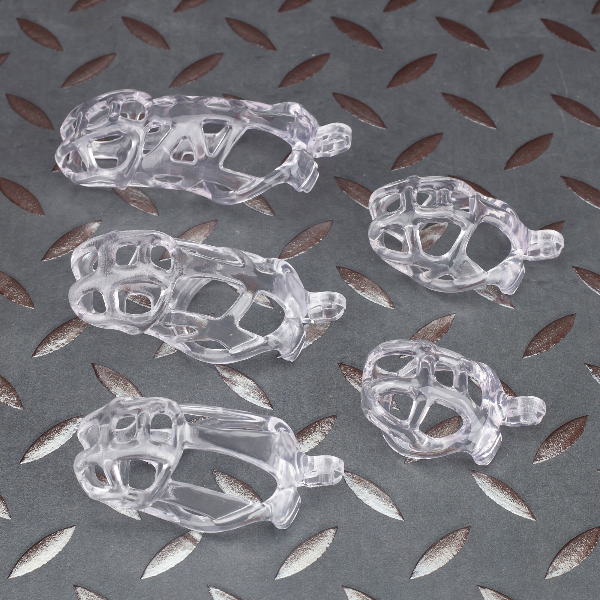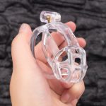 The See-Through Ice Transparent “Mamba” Chastity Cage is made of resin material and is one of the most comfortable and lightweight coops we make. Offered in a variety of sizes to choose from. Very sturdy and durable for long term wear.